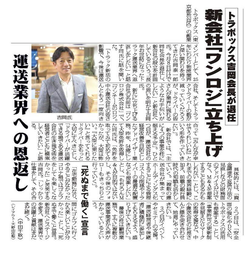 物流プラットフォーム「トラボックス」の運営に注力し、