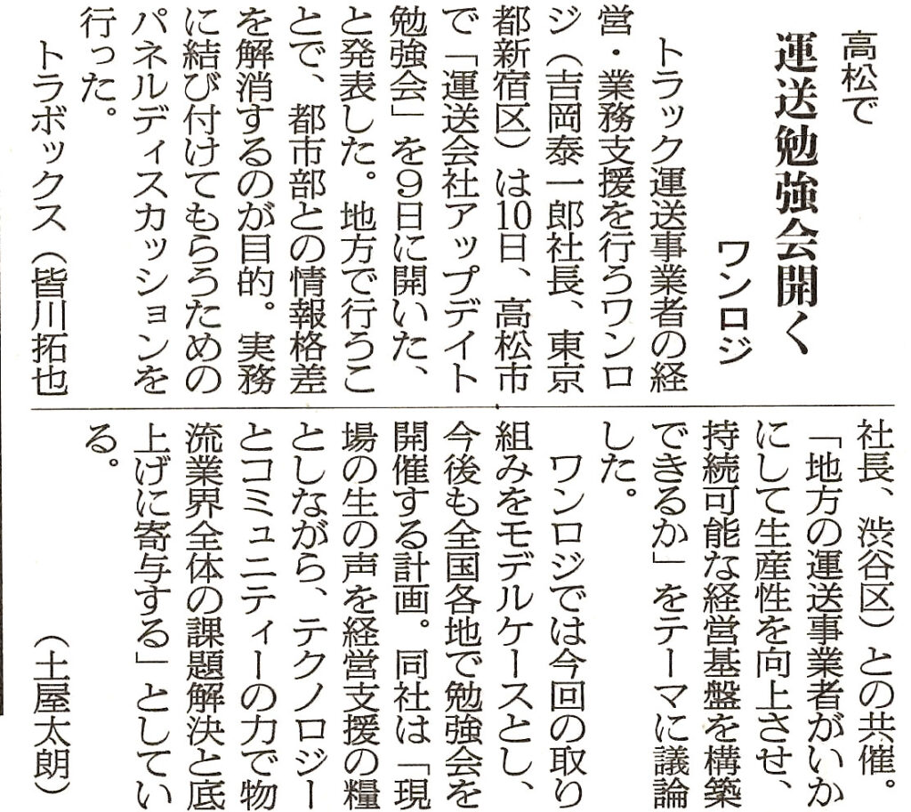 物流ウィークリーに掲載されました。